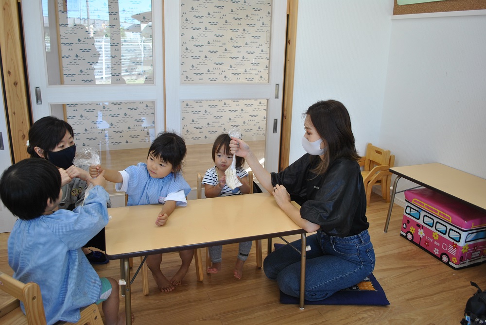 袋で材料をこねてから、型どりをしたり、丸めて遊びました♪ 朝と日中の気温差が大きいので、体調を崩しやすくなっています。お休みの間も体調に気を付けてお過ごしください。